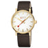 柔らかな印象が人気のブラウンストラップにホワイトダイアル、ゴールドケースの組み合わせです。
