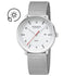 コンケーブ形状のマットホワイトダイヤルはわずかな透過性を持ち、ダブルドーム型サファイアクリスタルと組み合わせることで、奥行きとエレガンスを演出。日付表示と5気圧防水で、実用性も確保しています。