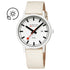 Mondaine essence solarには、太陽光や室内の光で充電できるスイス製ソーラームーブメントを搭載し、フル充電後は、暗闇でも最大8か月間駆動します。